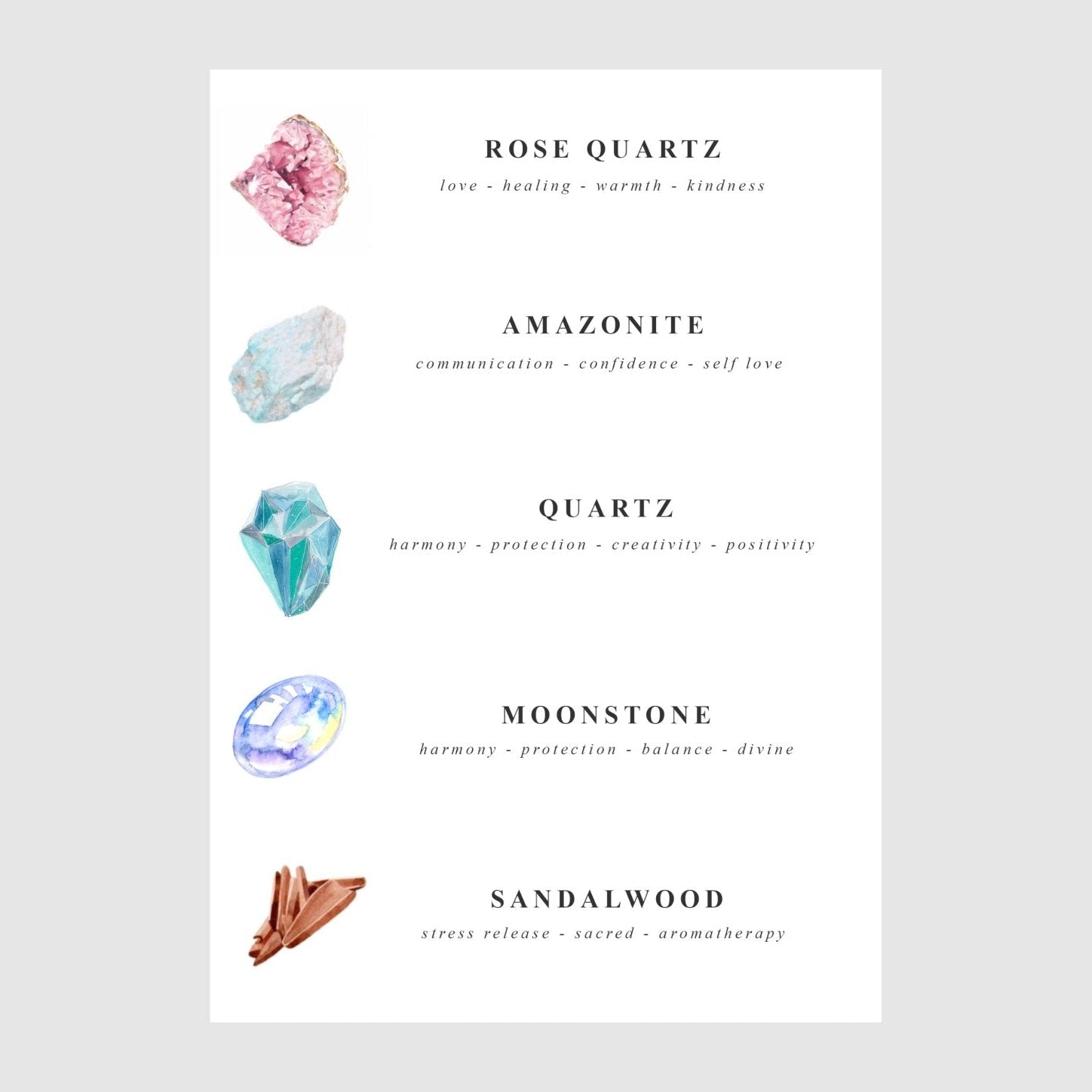 Quartz - Rose Quartz - Amazonite - Rainbow Moonstone - Stirling Silver 925