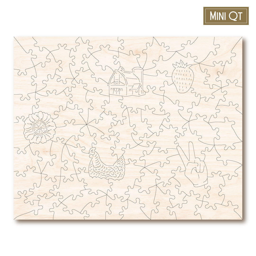 Our MINI QT puzzles are laser cut from thick, 4mm plywood and include 5 whimsies - they make a great puzzle snack!