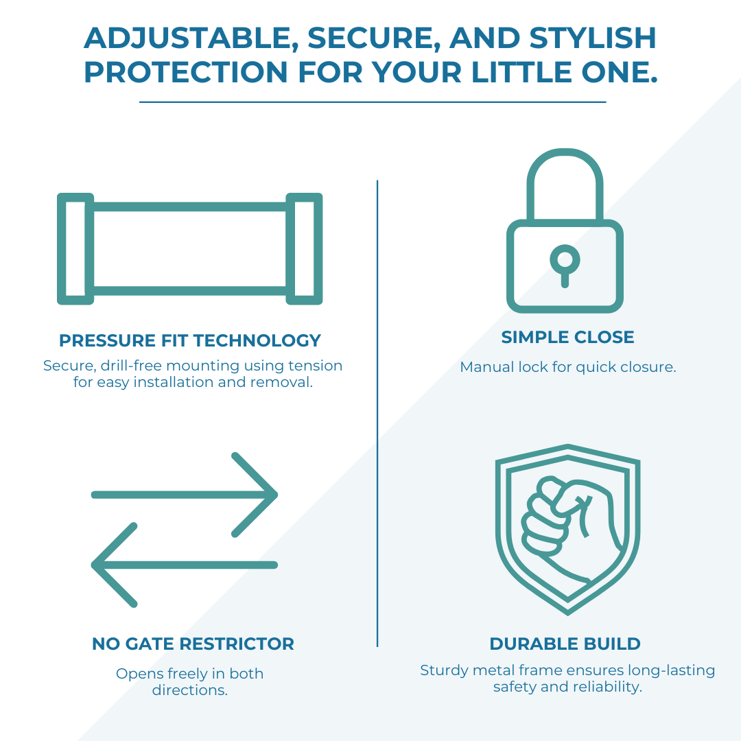 FYLO Baby Safety Stair Gate – Pressure Fit | No Drilling, Easy & Secure Installation