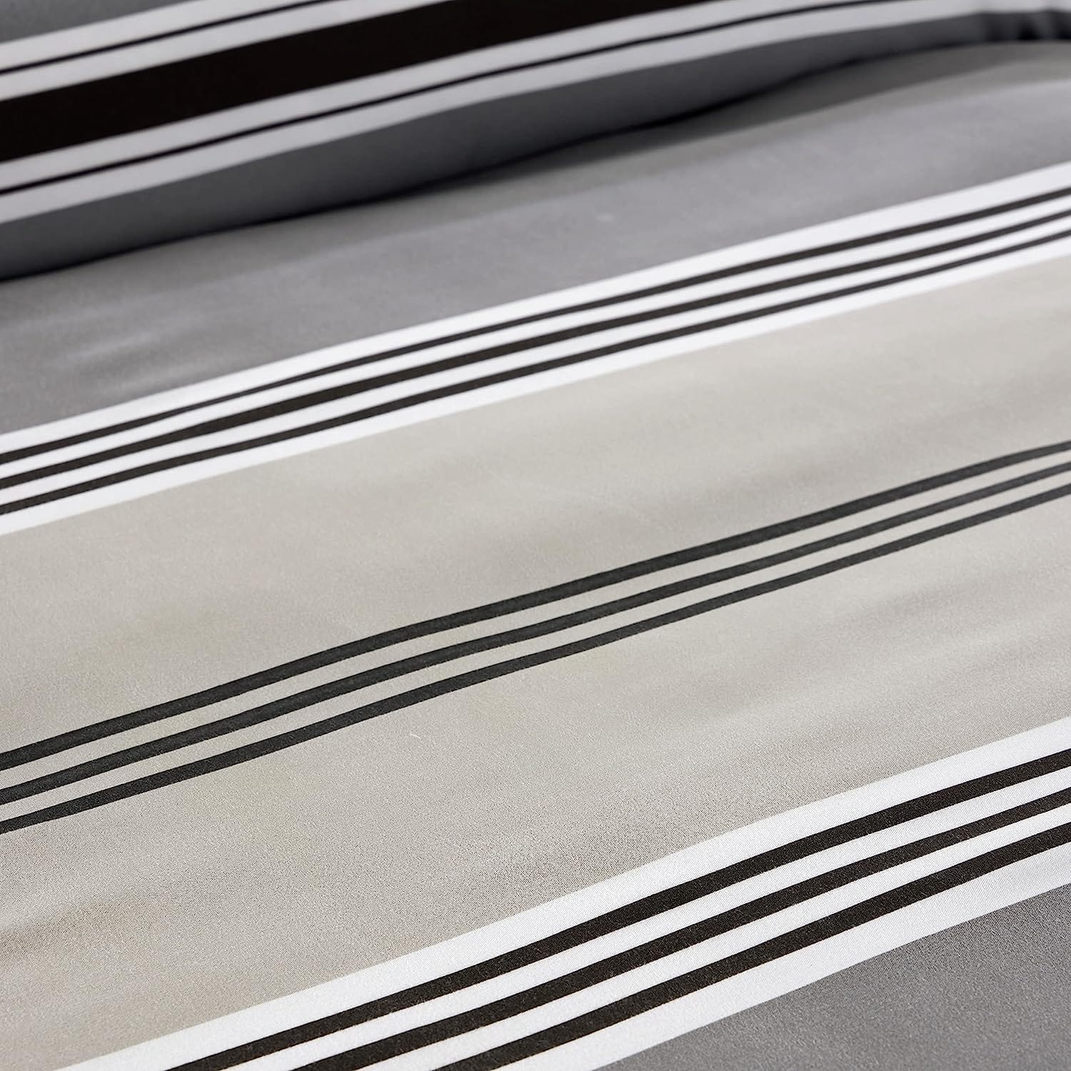 Description: The duvet cover features a chic Harlow Stripes Grey pattern that adds a modern and decorative touch to any bedroom decor. The reversible quilted design provides versatility in styling, allowing you to switch up the look of your bed effortlessly.