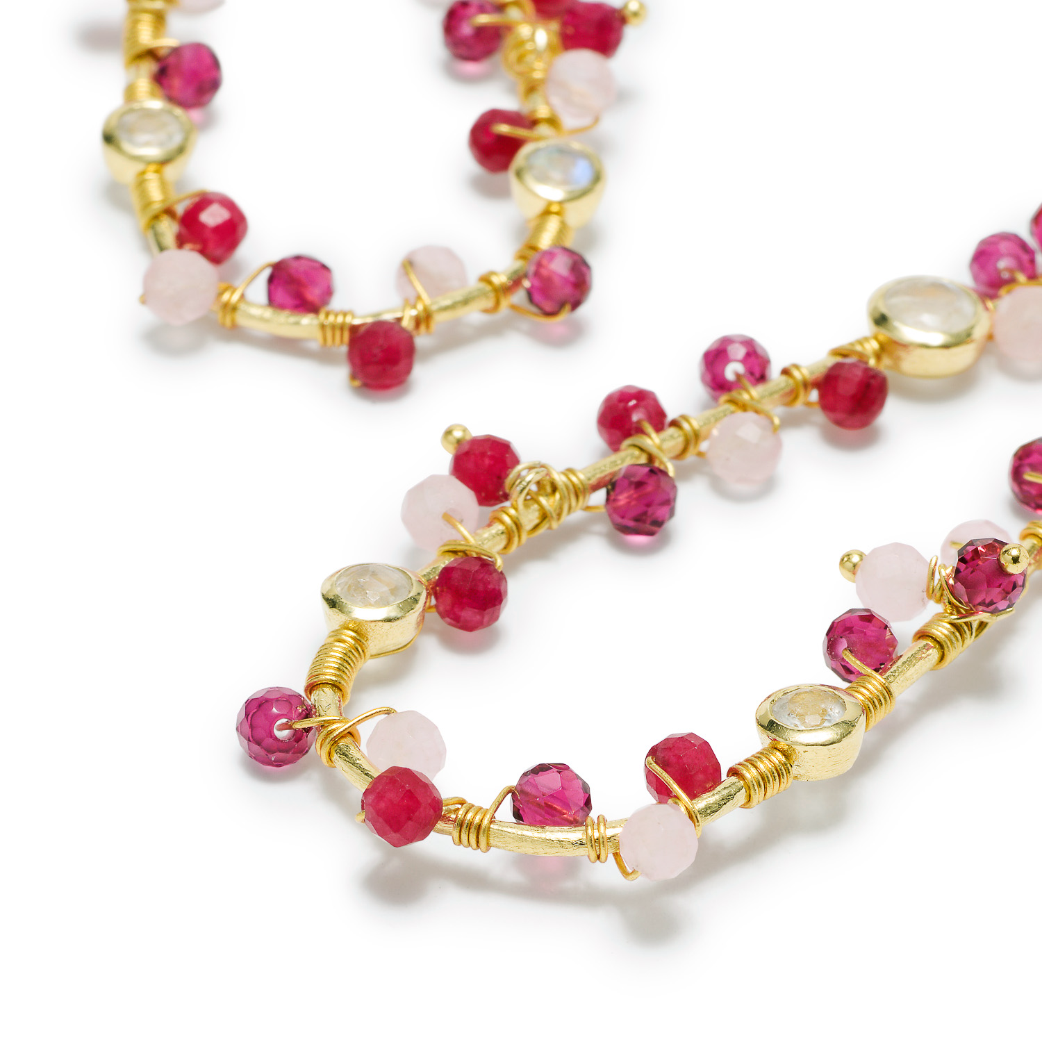 Make a statement with these unique and cool Hydra Large Teardrop Wire-Wrapped Gemstone Earrings. Crafted with mixed pink gemstones.