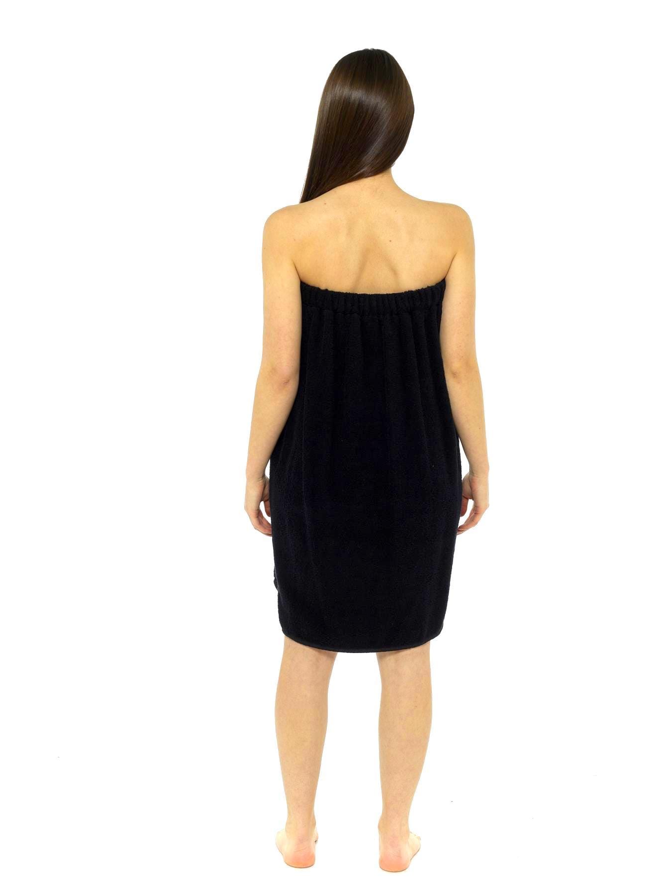 Description: The towel wrap features a hook-and-loop fastener with a double button and an elasticated back. This allows you to adjust the chest circumference for a perfect, secure fit that stays in place.