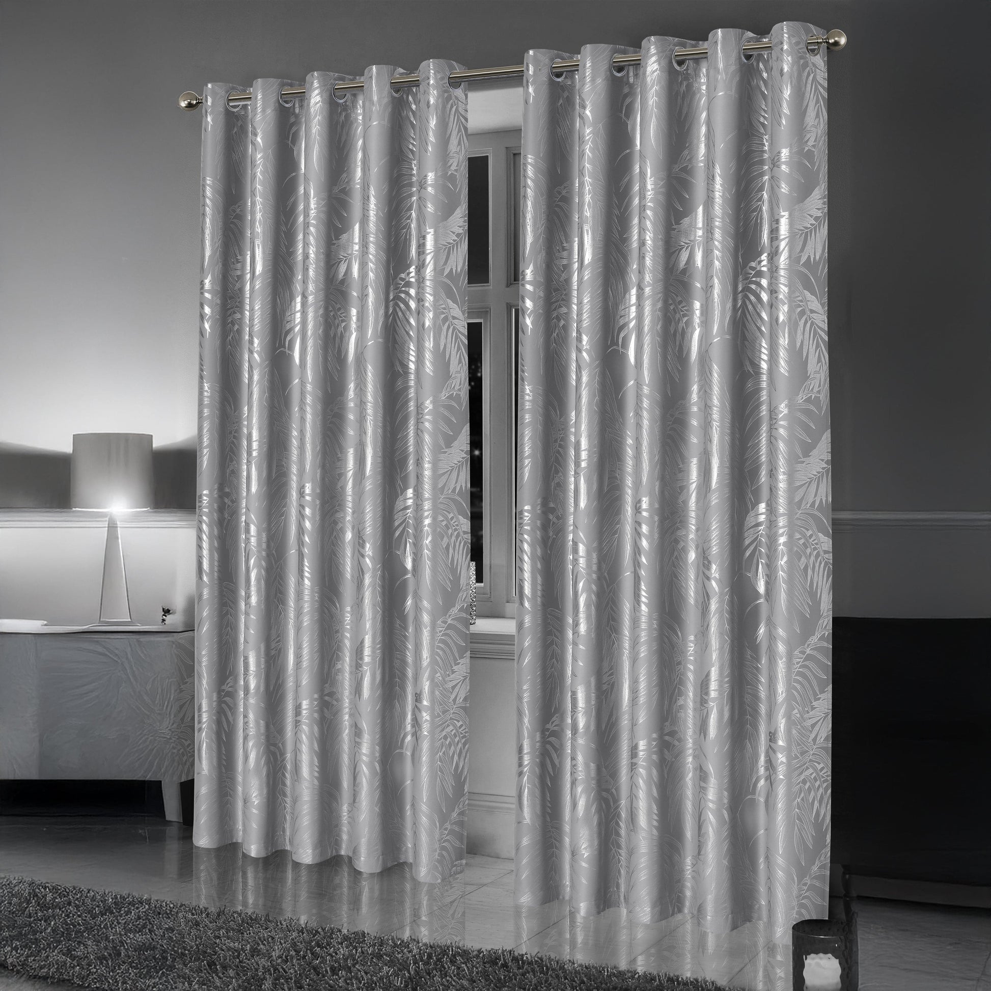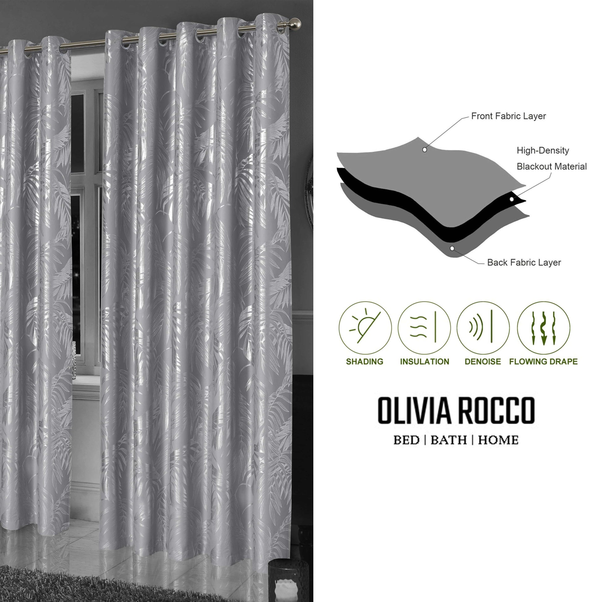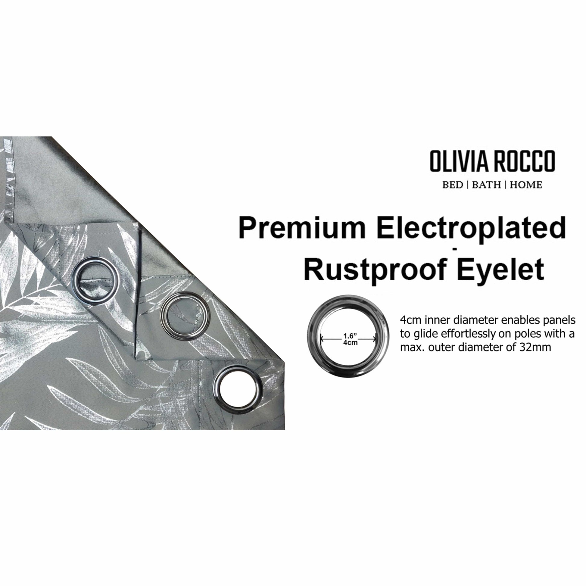 Leaf Silver Sparkle Blackout Curtains Super Soft Thermal Insulated Eyelet Drapes for Living Room & Bedroom 2 Panels by OLIVIA ROCCO