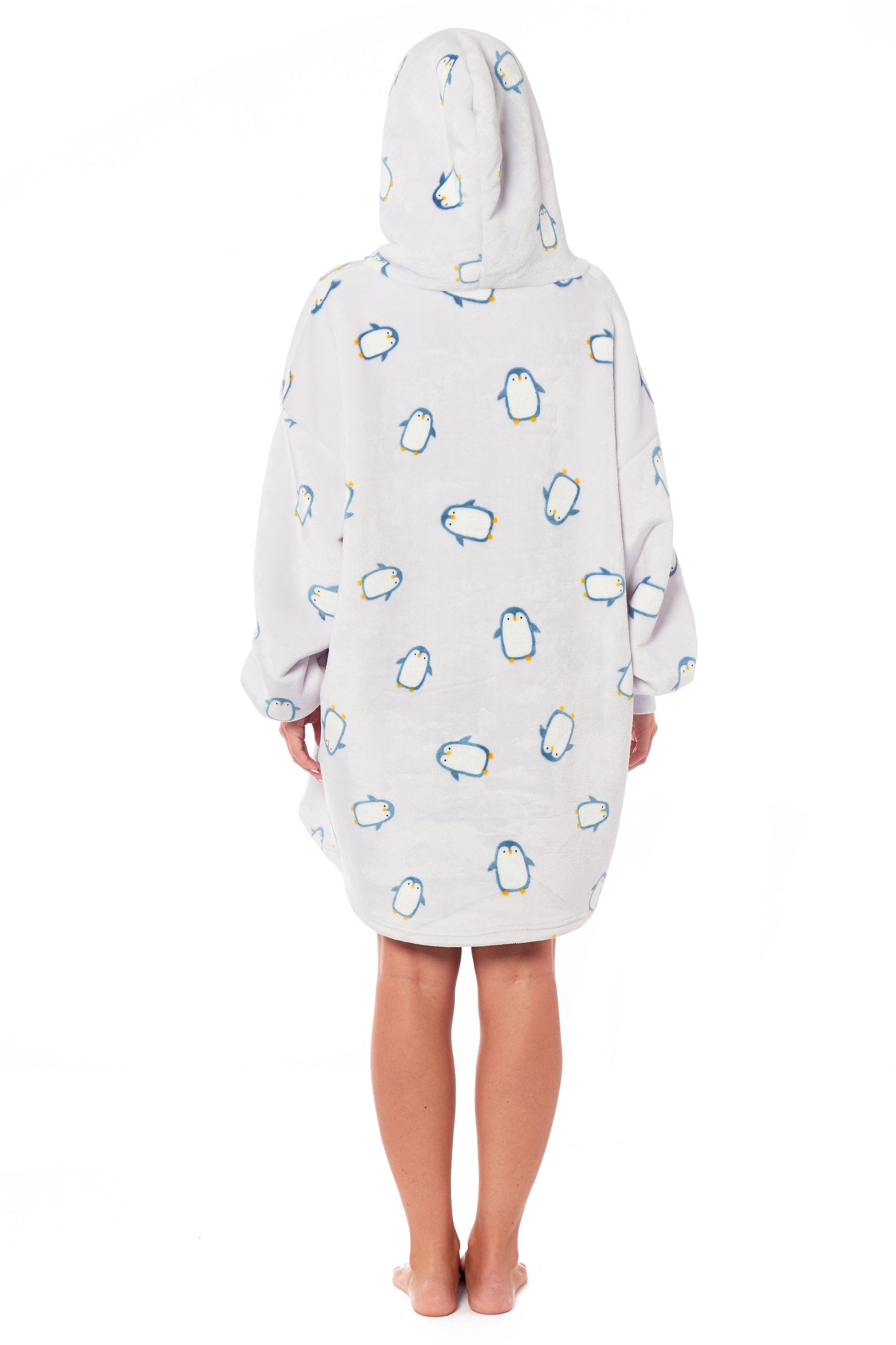 Oversized Hooded Penguin Blanket Plush Fleece Reversible Sherpa Giant Hoodie Sweatshirt Ultra-Soft Flannel Loungewear for Adults and Kids by Daisy Dreamer