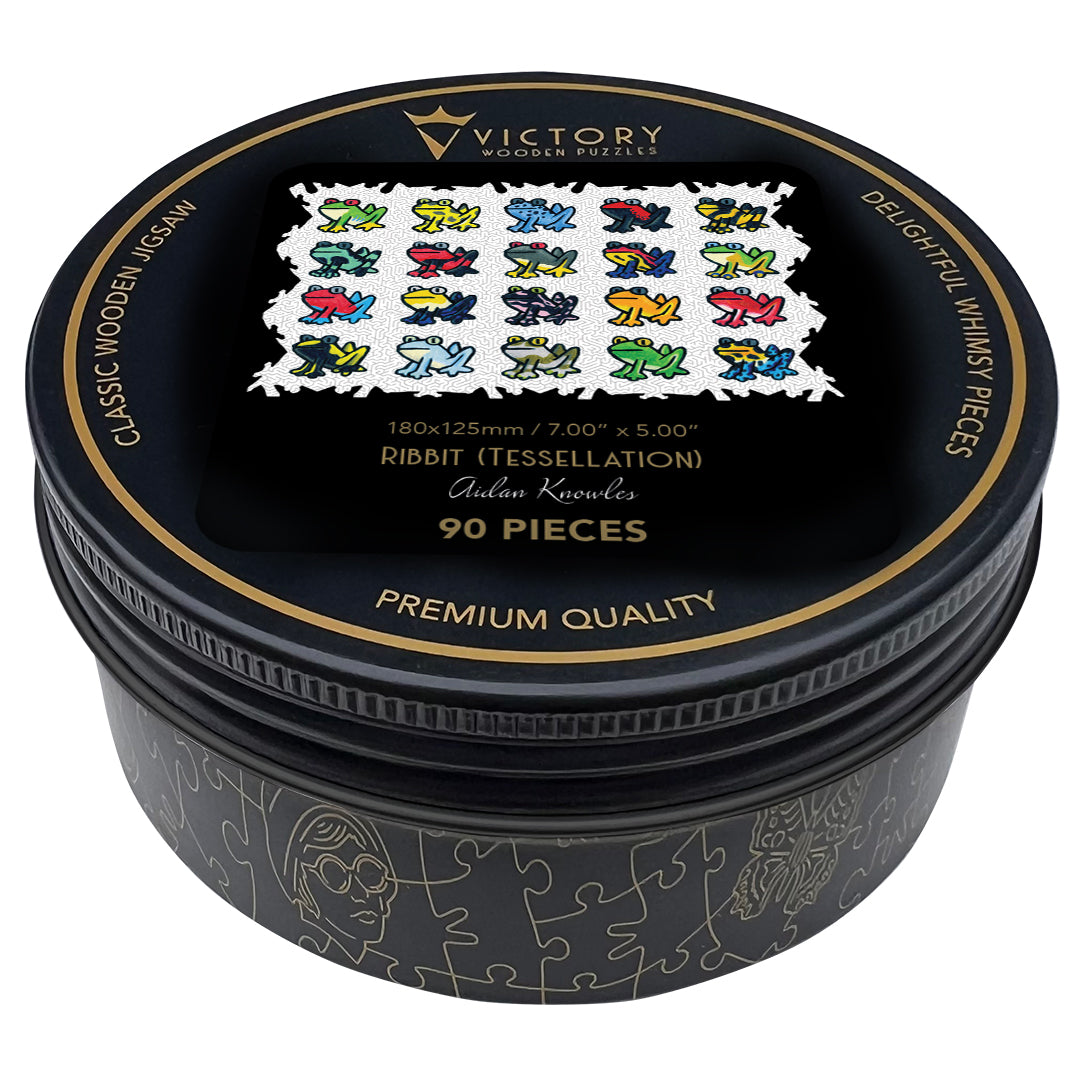 This tessellated puzzle design has an unusual cutting pattern, featuring just 2 shapes - a frog and a connector. Some might find it quite a challenge!