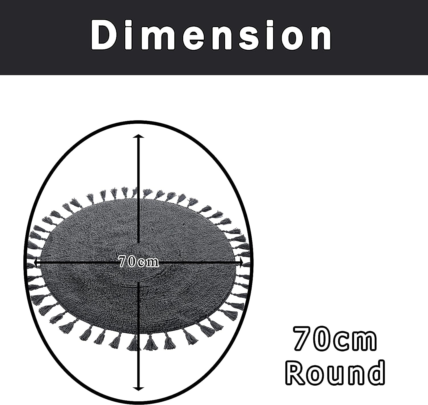 Description: The round shape and tassel edges add a touch of elegance and style to your bathroom decor. Available in multiple colours, this bath mat complements various bathroom themes and styles.
