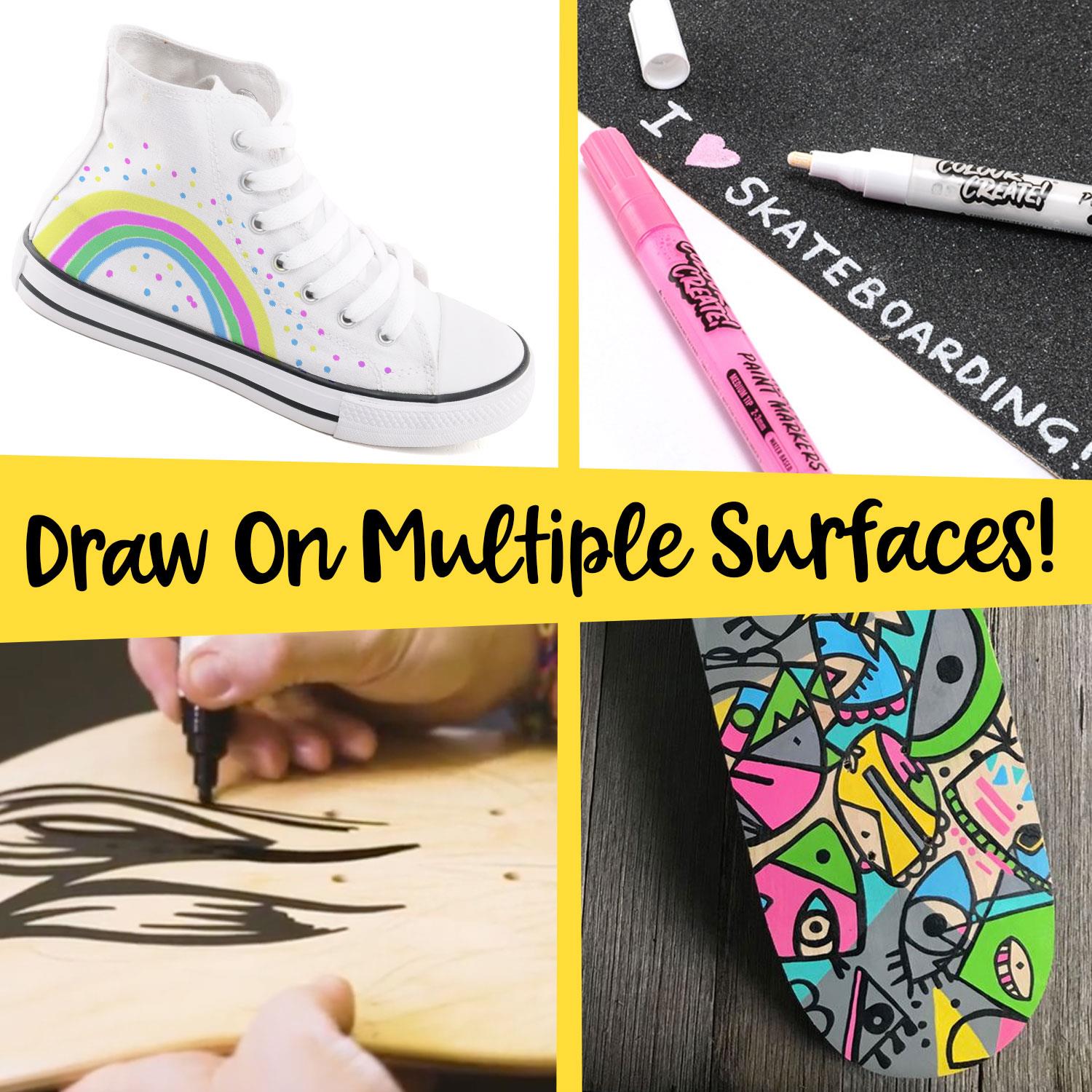 GET COLOUR CREATIVE! This Skateboard and pens pack is perfect for creating your own unique skateboard graphics. Comes with a blank deck and grip tape get your artwork noticed with a canvas you can skate! Don't just get creative....get Colour Creative!