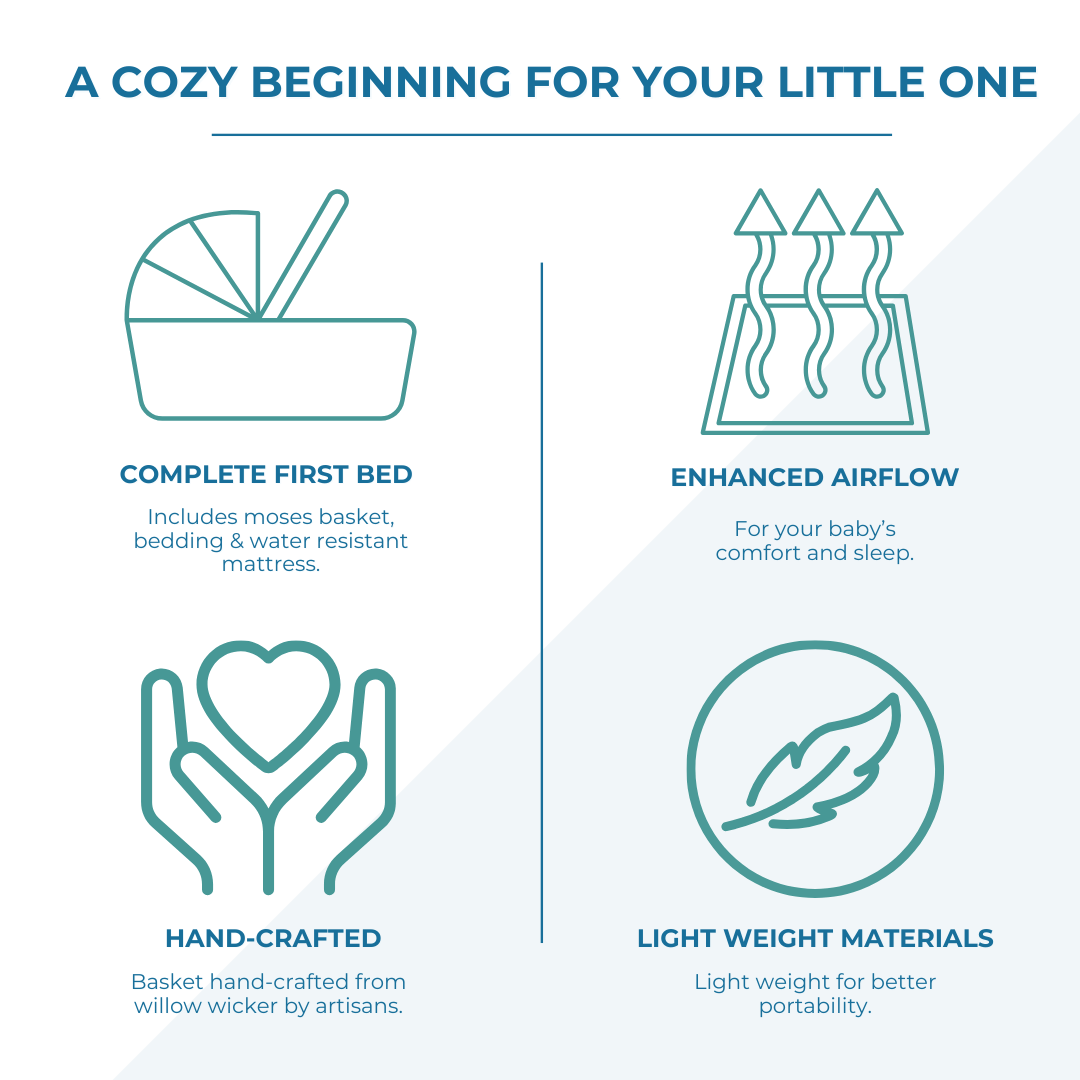 Elegant & Comfortable Wicker Moses Basket – Lightweight & Portable