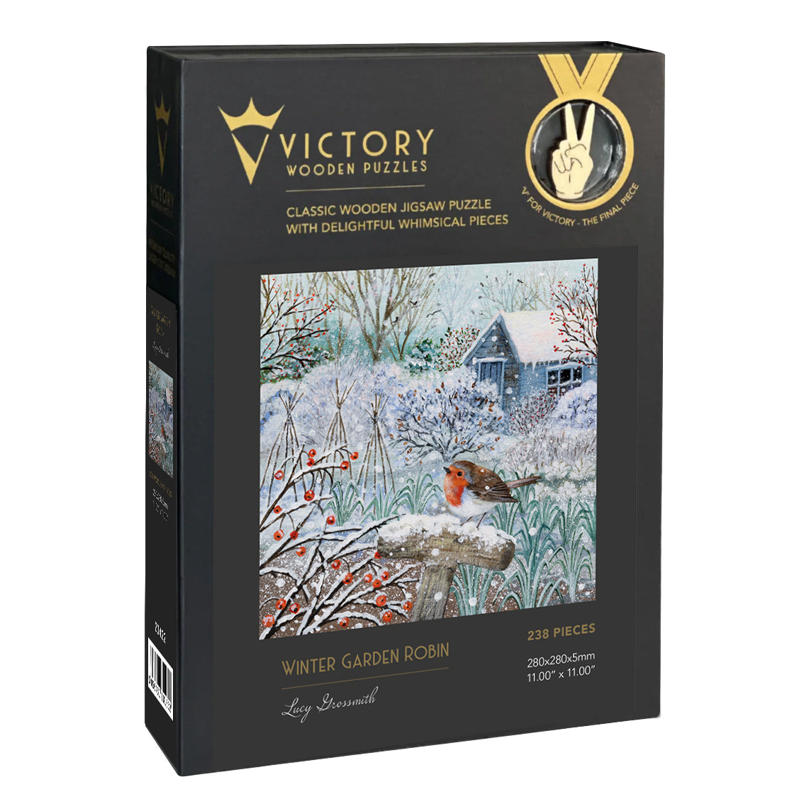 Experience the magic of winter with Winter Garden Robin, a stunning wooden jigsaw puzzle. With 238 irregular and whimsical shaped pieces, this puzzle captures the beauty of a winter garden, complete with snow-covered red berries, trees, and a charming robin. Get lost in the intricate details as you piece together this delightful winter scene. Perfect for puzzle enthusiasts and nature lovers alike.