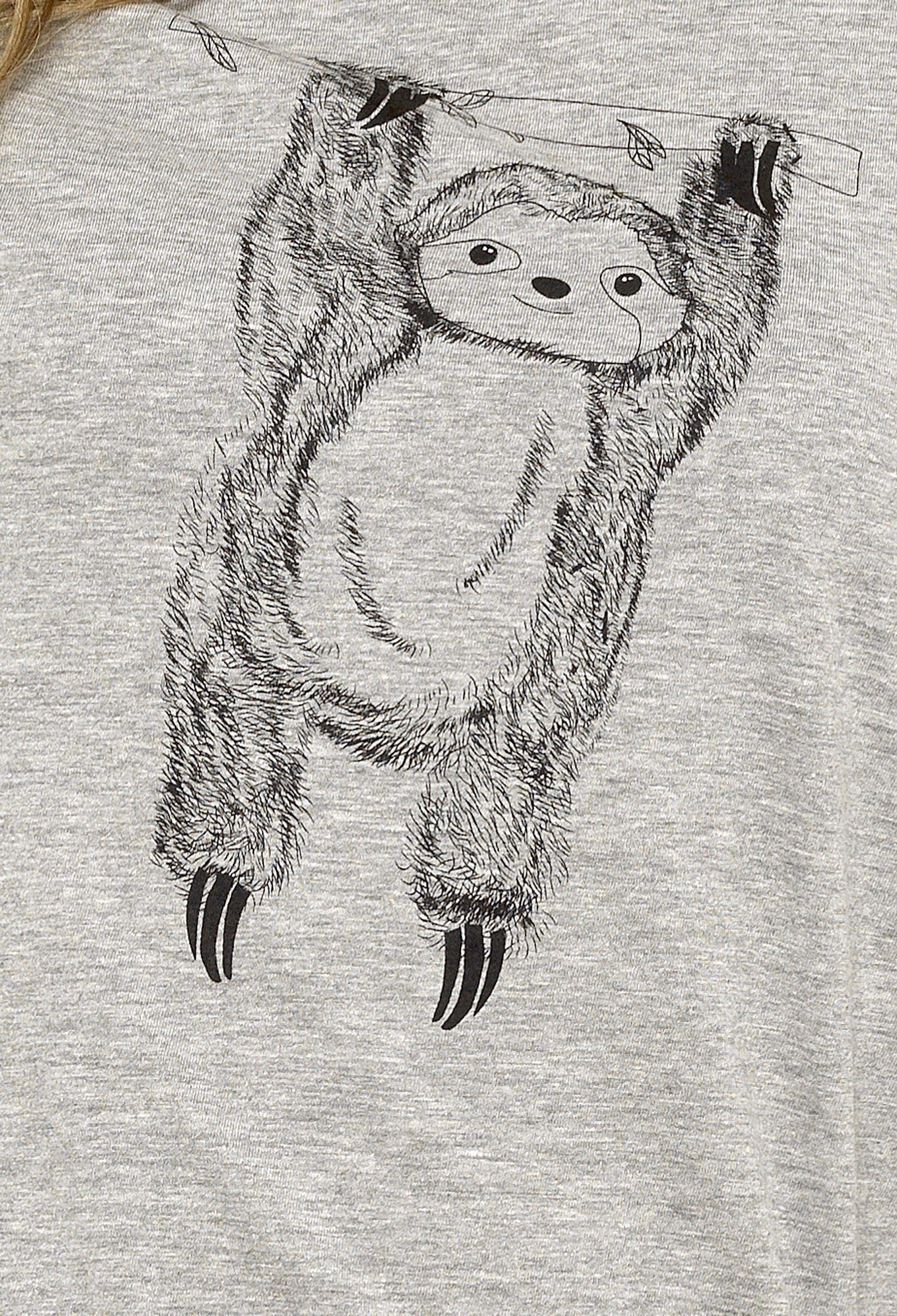 This charming pyjama set is available in a delightful grey colour, adorned with a playful sloth design that adds a whimsical touch to your nightwear collection.
