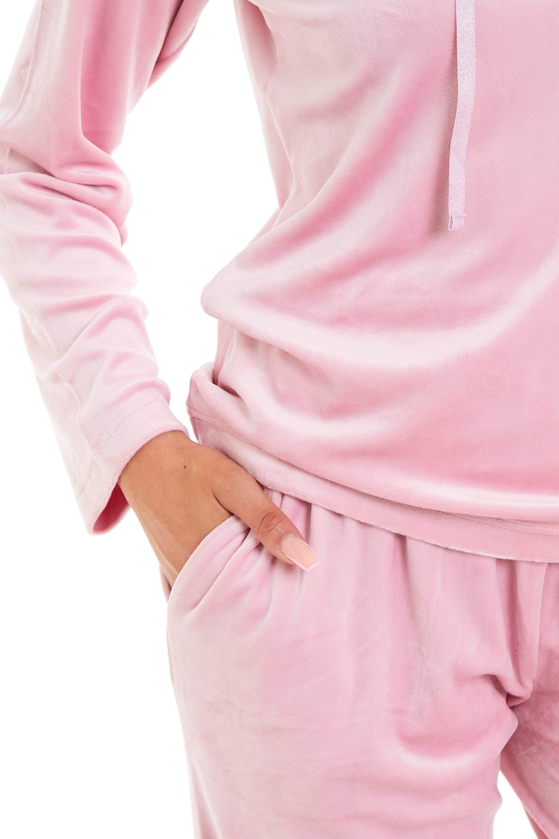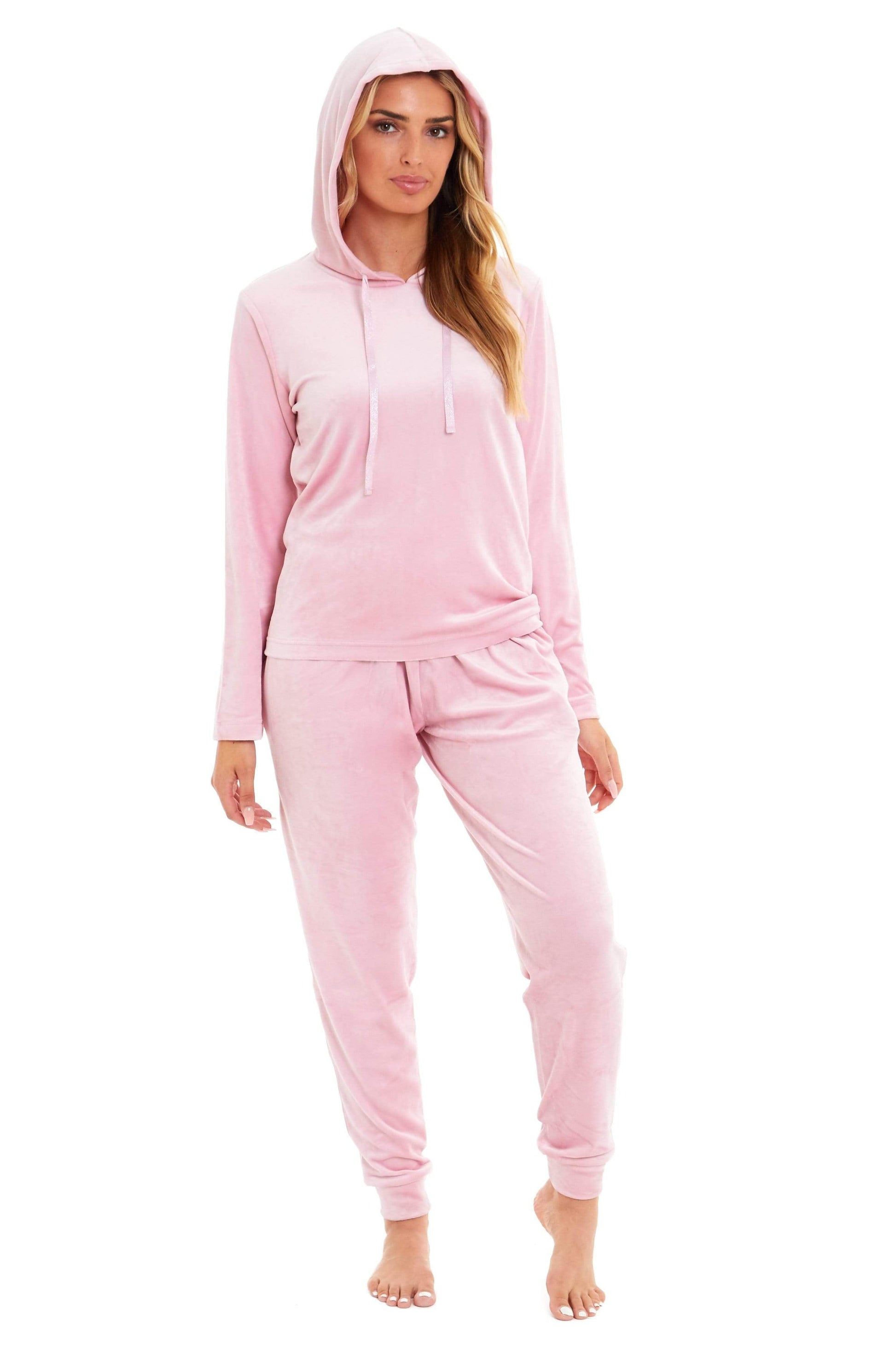 Women's Soft Touch Velour Hooded Pyjama Set Warm Stretchable Nightwear Perfect for Lounging Sleeping Sizes 8-22 by Daisy Dreamer